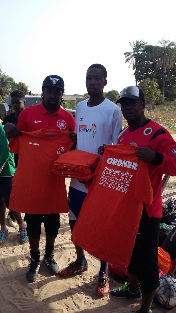 Aufgrund dieser Tatsache kam Backs die Idee, alte Trikots und Trainingsmaterialien, die hier sowieso nur im Staub liegen würden und in Vergessenheit geraten wären, zu sammeln und nach Gambia zu bringen.