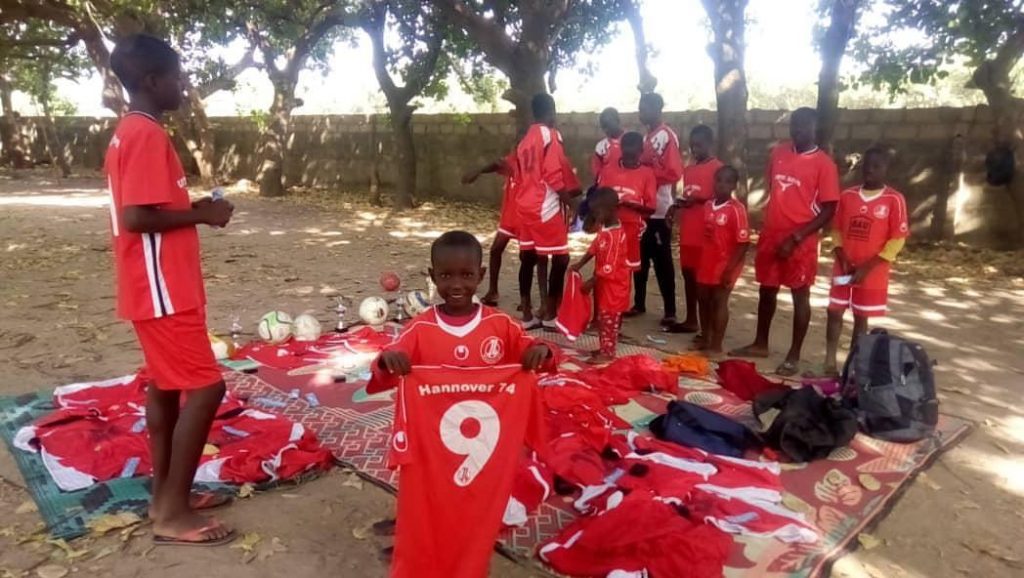 Seit nun schon drei Jahren unterstützt die Fußballsparte der SG 74 gambische Fußballer und Fußballschulen mit Materialien wie Bällen, Hütchen, Schuhe oder auch Trikots. Der 74-Trainer „Backs“ Baboucarr Sanyang führt diese Aktion regelmäßig durch und hat diese auch ins Leben gerufen. Backs, der seit 2014 ein fester Bestandteil der 74-Familie ist, sammelt seit Jahren alte Materialien, um diese dann in Kartons per Container nach Gambia zu bringen. Dabei wird er von vielen Menschen aus der 74-Fussballsparte auf verschiedene Weise unterstützt.