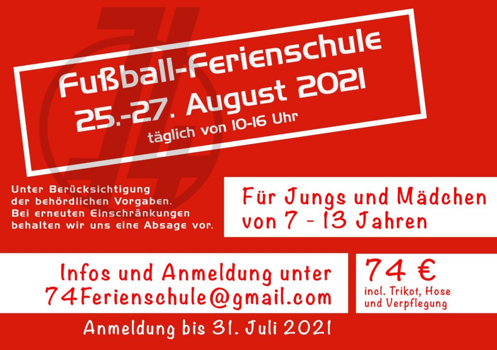 Jetzt anmelden für die 74-Fußball-Ferienschule 2021!