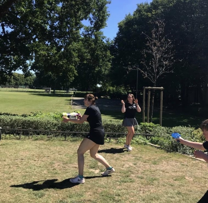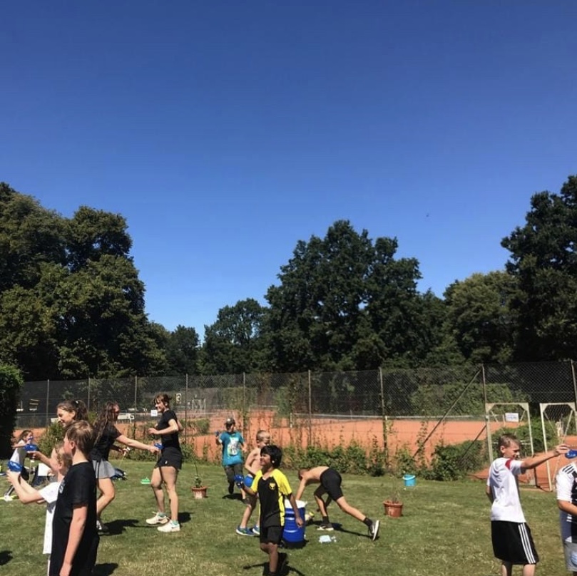 Bei der diesjährigen Sporterlebnis Woche Herrenhausen-Stöcken waren vier Mädels der Tennissparte und aus dem Jugendausschuss von 74 als Betreuer tätig und unterstützten so Anke Janke vom @ssb_hannover. 20 Kids konnten vom 20.07. bis zum 24.07. in fünf verschiedenen Vereinen in Herrenhausen und Stöcken verschiedene Sportarten ausprobieren und im besten Falle lieben lernen. Am Donnerstag war unser Verein an der Reihe und die Kinder konnten sich beim Tennis und Petanque ausprobieren. Besonders viel Spaß brachte aber auch die spontane Runde FuWaTe. Neben den sportlichen Aktion war allerdings auch die Wasserschlacht ein Highlight des Tages, denn mit der Mittagssonne wurde es richtig heiß auf der Anlage und so konnten die Kinder Spaß und Abkühlung in einem bekommen. Motto der diesjährigen Woche war “Prima fürs Klima” weshalb jeden Tag auch eine Umweltaktion auf dem Programm stand. Am Donnerstag haben die Kids also nach dem leckeren Mittagessen in unserer Vereinsgaststätte , kleine Insektenhotels aus recycelten Konservendosen gebaut. Am frühen Nachmittag fuhren alle Kinder dann glücklich nach Hause und für ein paar Kinder war der Tag auf unserer Anlage sogar das Highlight der Woche. I